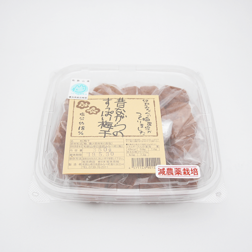 日本一の梅の里和歌山県みなべ町のエコファーマー認定農家が自家梅園で栽培した完熟南高梅です。天日塩で漬け込み天日干しで仕上げ「塩かど」をとるために一定期間熟成させた梅干のみを商品として使用しています。昔ながらの伝統製法を守り生産しています。
