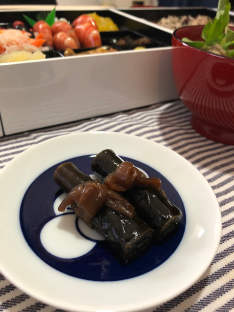 お正月に定番の昆布巻きに梅を加えて煮てみました。